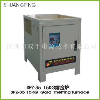 (1) SPZ-35 15KG熔金爐 (2) 中頻35KW,頻率6KHZ左右; (3) 熔煉溫度1200℃左右; (4) 純石墨鍋 Ф110×190高