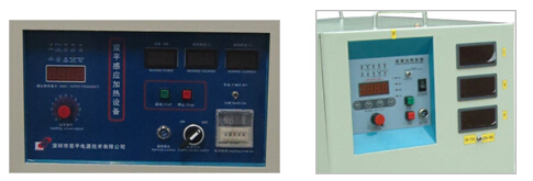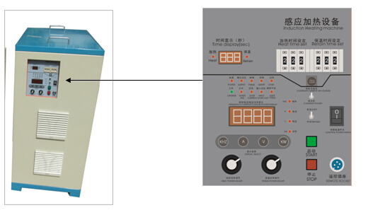 Since most of MF induction heating is long time or continuous working, normal front panel is installed on the machine, as indicated below pictures. With only start and stop button, and power adjust knob, it is easy to operate.