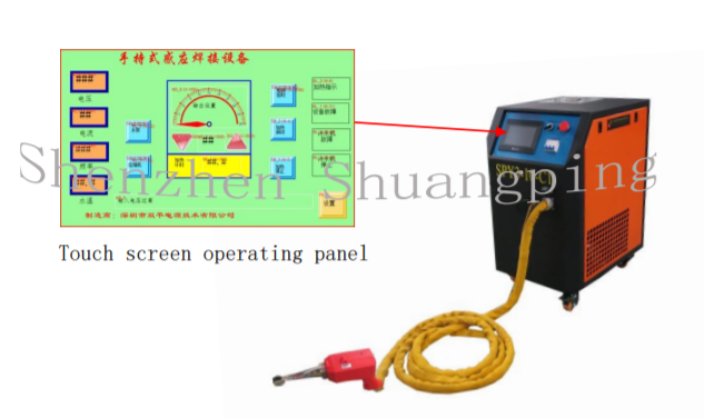 Representing SPYD machine with frequency 20KHZ around, power 10KW and touch screen operation panel.