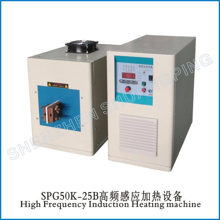 2. Maximum current through coil: Current through coil of SPG50K machines is obviously larger than that of SP machines of same power model. For example: maximum current of SPG50K-25B is 1350A and 900A for SP-25BD in comparison. Larger current is much better when heating copper, aluminium or other low induction load applications. For example, in brazing copper parts, SPG50K-25B is much quicker than SP-25BD.