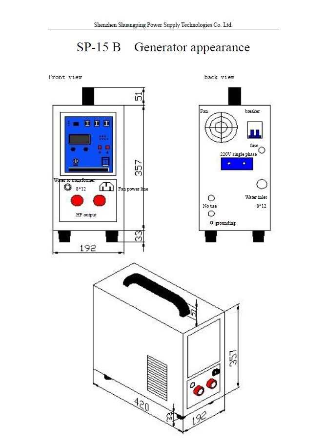 1. In SP-15B and SP-25B machines, the high frequency transformer is separated from the generator, with 2 meters connecting cable at least.