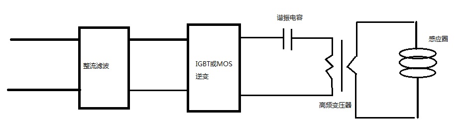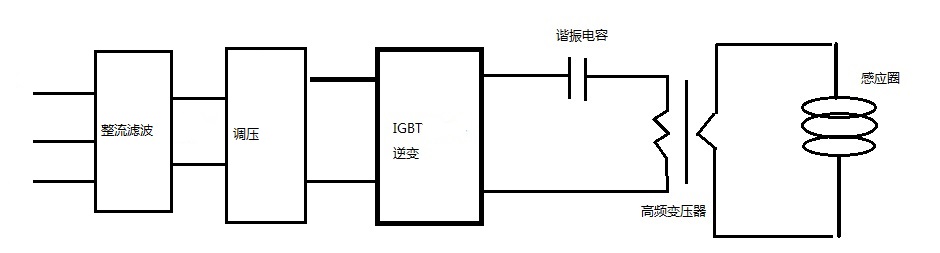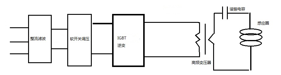 SP系列設備全部采用串聯(lián)諧振電路,諧振后通過高頻變壓器輸出低電壓、大電流的高頻電源;