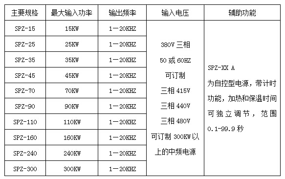 (1) SPZ系列中頻電源,結構上采用并聯諧振,負載匹配簡單,設備效率高且利用率高。可以直接取代常規的可控硅中頻電源;