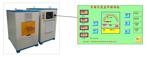 如下圖,中頻加熱多數是長時間或連續的加熱過程,所以常規中頻多數采用普通的中頻面板,如下圖。這種面板操作簡單,只有啟動、停止按鈕和功率調節旋鈕,進行簡單操作。