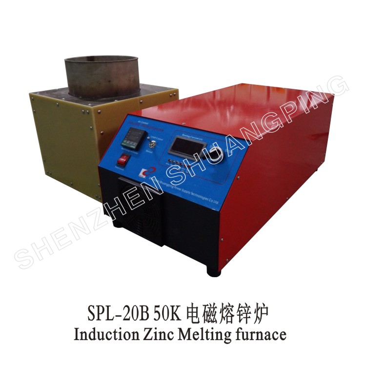 (1) SPL-20B 50KG電磁熔鋅爐 (2) 熔錫,鉛,鋅等低熔點金屬 (3) 鐵鍋Ф250×350高 (4) 20KW電磁爐,風冷帶變壓器,帶溫控; (5) 輸入三相380V 50或60HZ