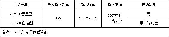 SP-04C系列設備結構簡單、價格優惠,振蕩頻率可達到250KHZ,在小零件的加熱中,有廣泛的應用;