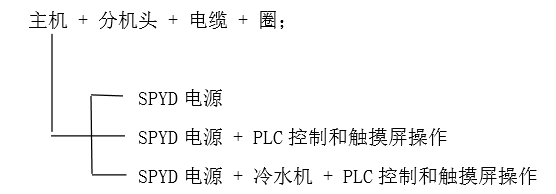 主機主要部分為SPYD電源,但也可以包含冷水機; 控制面板可以是最簡單的操作面板,也可以是PLC控制和觸摸屏操作面板, 我們目前主要提供上述三種主機形式。